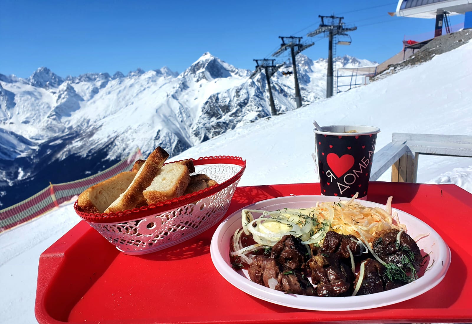 Обед на поляне Чегет или поляне Азау