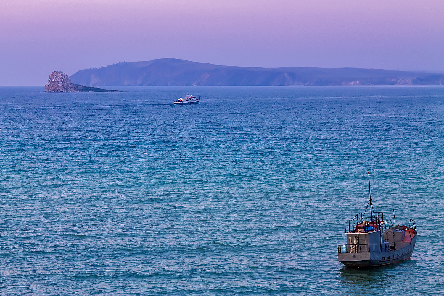 Кульминация дня — пересечение Байкала на корабле! Вам предстоит морское путешествие длиной 80 км от северной оконечности острова до восточного берега священного озера.