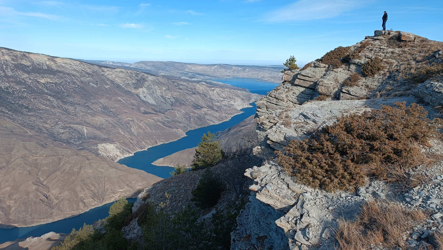 Приглашаю на трекинг тур на Гимринский хребет. Гимринский хребет это граница между предгорной и горной частью нашей республики. Протягивается на 60—65 км от рек Аварское Койсу и Сулак, к которым обрывается крутой стеной. а высшая точка — гора Аттау (2134 м). Хребет очаровывает целебной водой родников и неописуемым видом горных панорам. А нам предстоит побывать на смотровых площадках над Сулакским каньоном, восхититься Каранайскими пещерами, подняться на пик Гагарина ( гора Рогдомеэр высота 1937 м.) Отсюда открывается вид практически на весь предгорный Дагестан. С вершины в хорошую погоду можно увидеть синеву Каспийского моря. Здесь в свое время побывали Лев Толстой, Лермонтов, Айвазовский, Дюма-старший, который описал свои впечатления о каньоне в книге Путешествие по Кавказу. Мы проедемся по живописным местам до села Верхний Каранай. Оставив здесь машину, дальше будем передвигаться пешком наслаждаясь красотой окружающей природы и величеством горных вершин. С высоты птичьего полета увидим Чиркейское водохранилище, змейку Сулакского каньона реку Аварское койсу с Ирганайской Гэс.