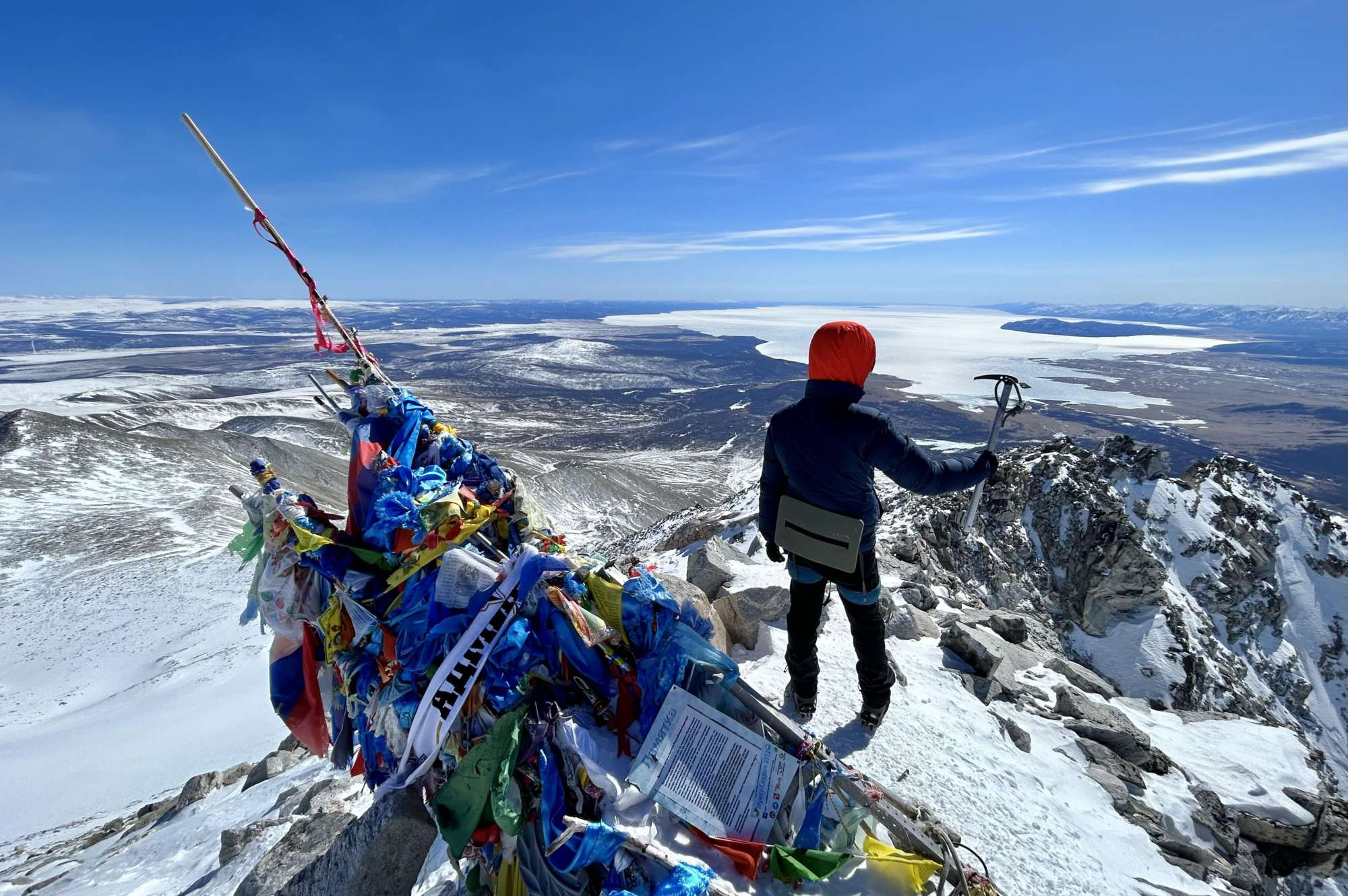 Ранний подъём, завтрак, проверяем себя, свои вещи и выдвигаемся к горе! Сперва мы проходим ледовые каскады р.Мугувек, на которых были вчера, и далее тропа проходит по ледниковой долине Мугувека до первого скального взлета. Минуем его и тропа снова выполаживается. Перед нами раскроются виды высоких скальных стен пиков Тыхен-Ардын, Катька-Дура, Мугувек, Опасная, Ласточка и др. Второй скальный взлет представляет собой естественную дамбу (ригель) оз. Эхой, построенную ледником. Обходим ее стороной и выходим к оз. Эхой. Здесь можно передохнуть и набраться сил до следующего марша к так называемой подушке это вал конечной морены ледника. Здесь надеваем кошки, перекусываем и направляемся к финальному взлету к вершине. Пройдем по перилам и увидим знаменитую треногу с буддистскимиленточками. Высота 3491 м над уровнем моря! Фантастические виды на оз. Хубсугул, Монголию, окрестности Мунку-Сардык и Окинское плоскогорье вызовут у вас бурю эмоций! Здесь мы перекусим и после направимся вниз. Не торопясь идем до лагеря, где нас будет ждать вкусный ужин. Делимся впечатлениями, такие восхождения запоминаются надолго!