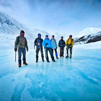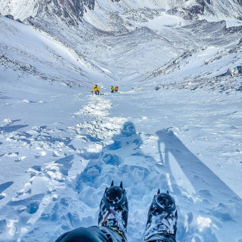 Высыпаемся и вкусно завтракаем. В этот день у нас по плану учебные занятия: по технике передвижения в кошках и с альпинистским оборудованием, подгонка снаряжения. Учимся передвигаться по различному рельефу, зарубаться ледорубом на снежном склоне. Расскажем основные правила безопасности в горах. Обед и ужин в лагере. Вечером подготовим штурмовой рюкзак и поделимся впечатлениями.