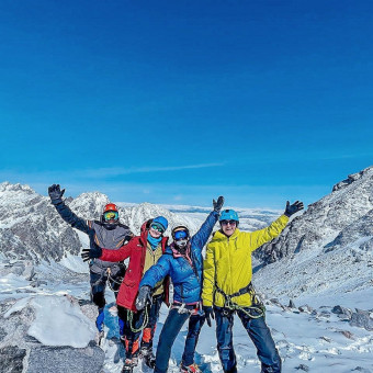 - альпинстское личное снаряжение: кошки, каска, ледоруб, обвязка, самостраховка и карабины