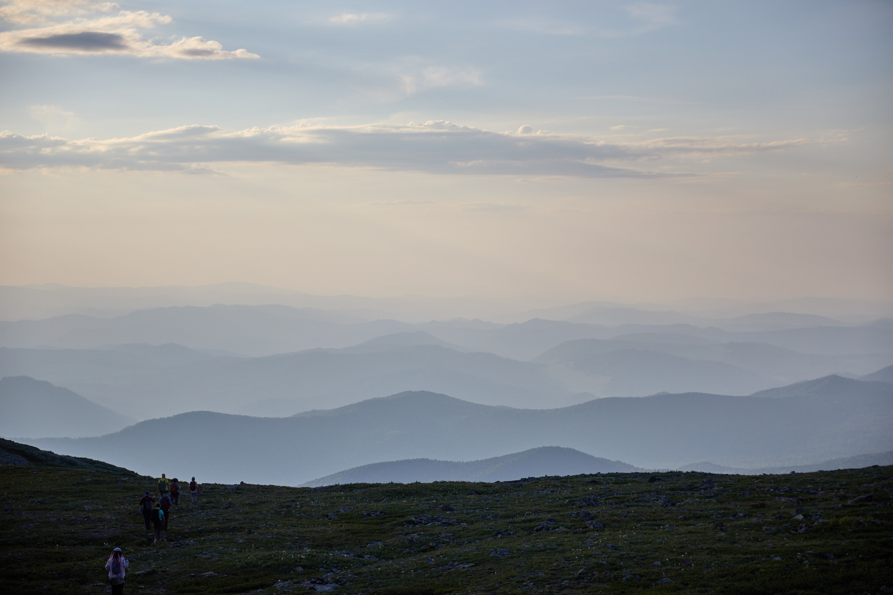 С вершины в хорошую погоду открывается вид на весь Катунский хребет, территорию сопредельного Казахстана и долину реки Ак-Кем. На вершине передохнём, сделаем памятные фотографии.