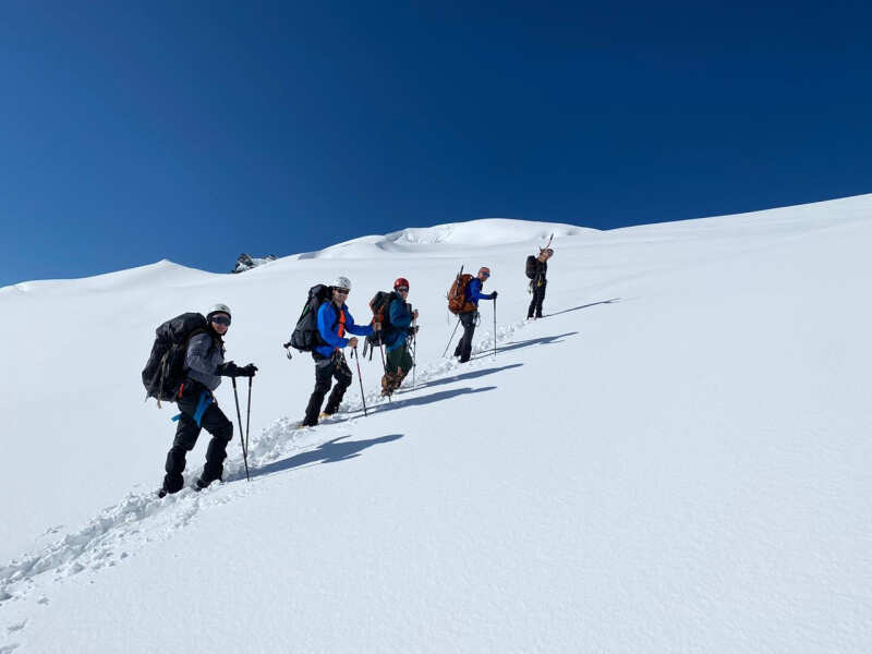 На маршруте проводится обучение навыкам работы с альпинистским снаряжением и ледовые занятия, по итогам которых будет совершено восхождение на одну из вершин в массиве Белухи. Сложность альпинистского маршрута от 2А до 4Б (в зависимости от уровня группы).
