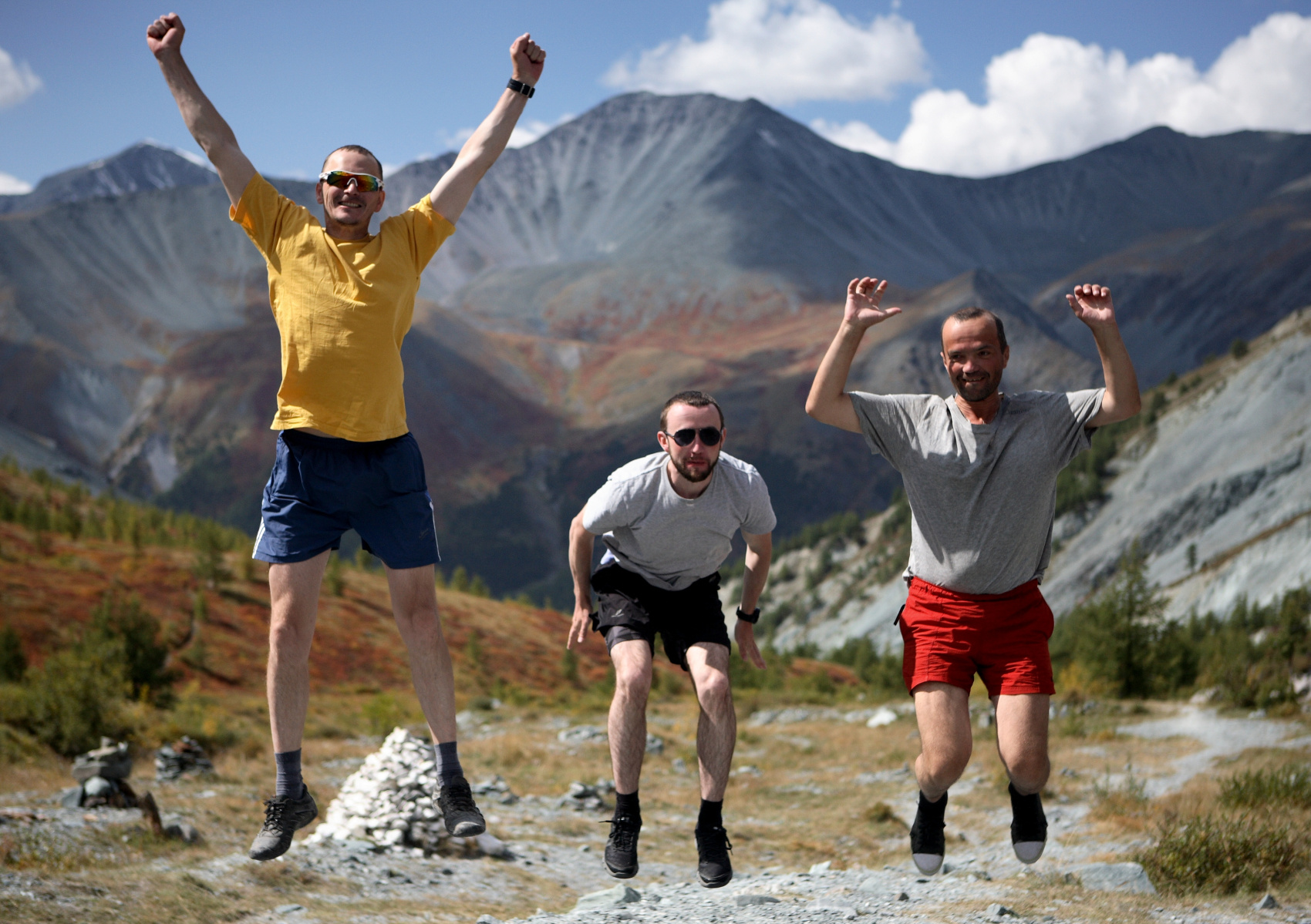 Мы не несем палаток, снаряжения и еду. Идем только со своими вещами т.к. все продукты забрасываются на базу на вертолете, а наше горное снаряжение уже ждет нас на лагере Томские стоянки. Равномерно распределяя нагрузку, останавливаясь на отдых и перекусы мы к вечеру дойдем до нашей базы, где нас ждет ужин, и, возможно, баня. (Набор высоты за день 1000 м)