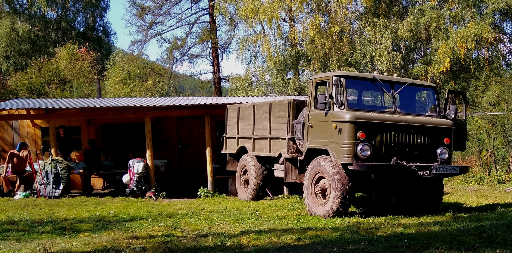 Сегодня нам предстоит повторить наш путь от базового лагеря до Тюнгура, но в обратном порядке. Идем налегке и вниз. Идти легко. Обычное время в пути до стоянки Три березы 5 часов. Там нас ждет кафе и Газ 66. Еще 1,5-2 часа на машине, и мы на базе. Тут есть уже все блага.