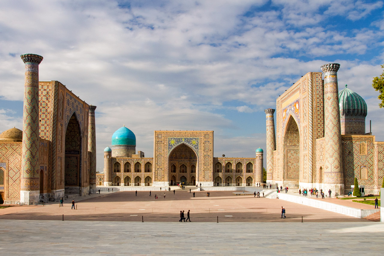 Ваше знакомство с Самаркандом начнется с самой известной площади Центральной Азии Регистана. Это сердце города, окруженное тремя величественными медресе: