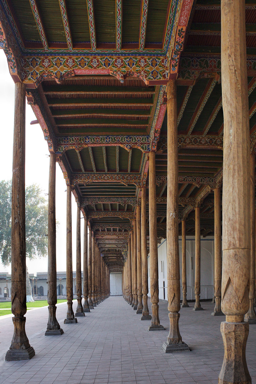 Главная резиденция хивинских правителей, поражающая своей роскошью. Дворец украшен изразцами, резьбой по дереву и камню, а его внутренние дворики и залы переносят в эпоху восточной сказки.