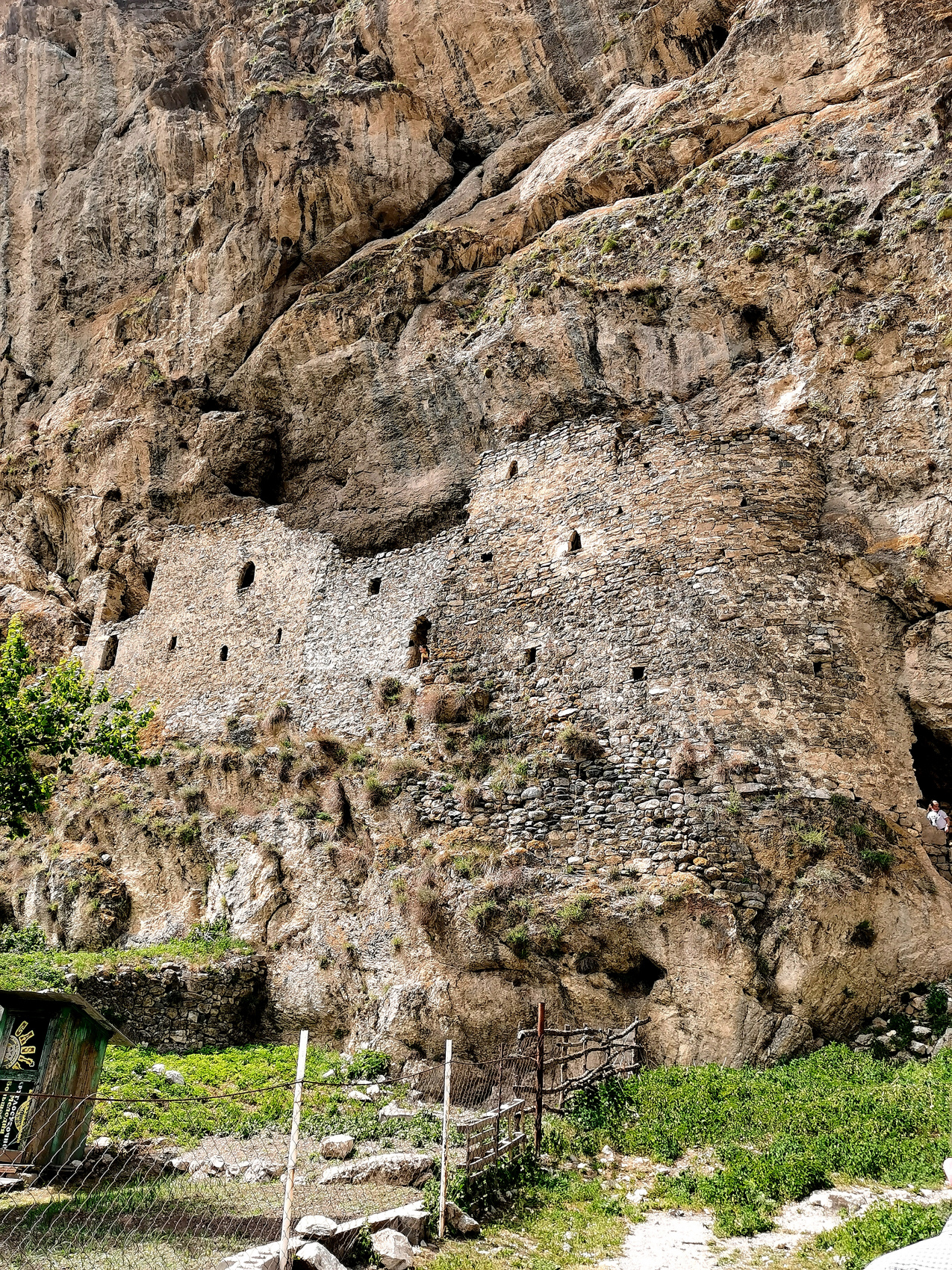 Скальная крепость Дзивгис. Крепость датируется временами нашествия Тамерлана, то есть примерно 15 веком. Удивительное по тактической хитрости сооружение, созданное горцами для защиты от вражеских набегов.
