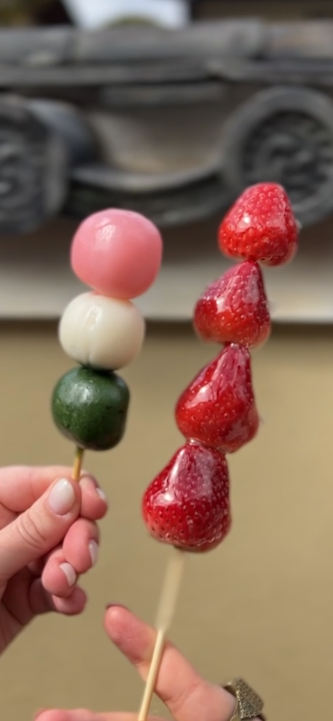 На перекус попробуем свежеприготовленные моти — сладкие рисовые шарики, а если повезет, увидим старинный способ их изготовления прямо на улице.