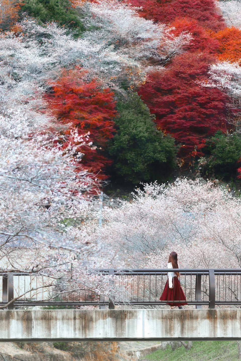 В Нагое мы оставим вещи в отеле и отправимся в место, где природа творит невозможное. Парк Обара Фуреай — единственное место в Японии, где одновременно цветет сакура и горят красные клены. Каждый ноябрь горные склоны расцветают неповторимой палитрой: нежно-розовые лепестки сики-дзакуры смешиваются с алыми и янтарными листьями.
