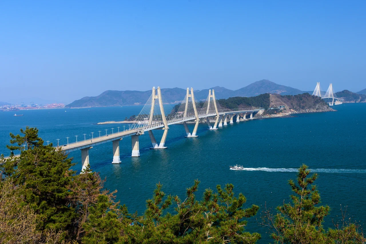 Выезд из Пусана. Осмотр моста Геога — уникального вантового моста с подводным тоннелем (глубина 48 м, длина 3,7 км) со смотровой площадки.