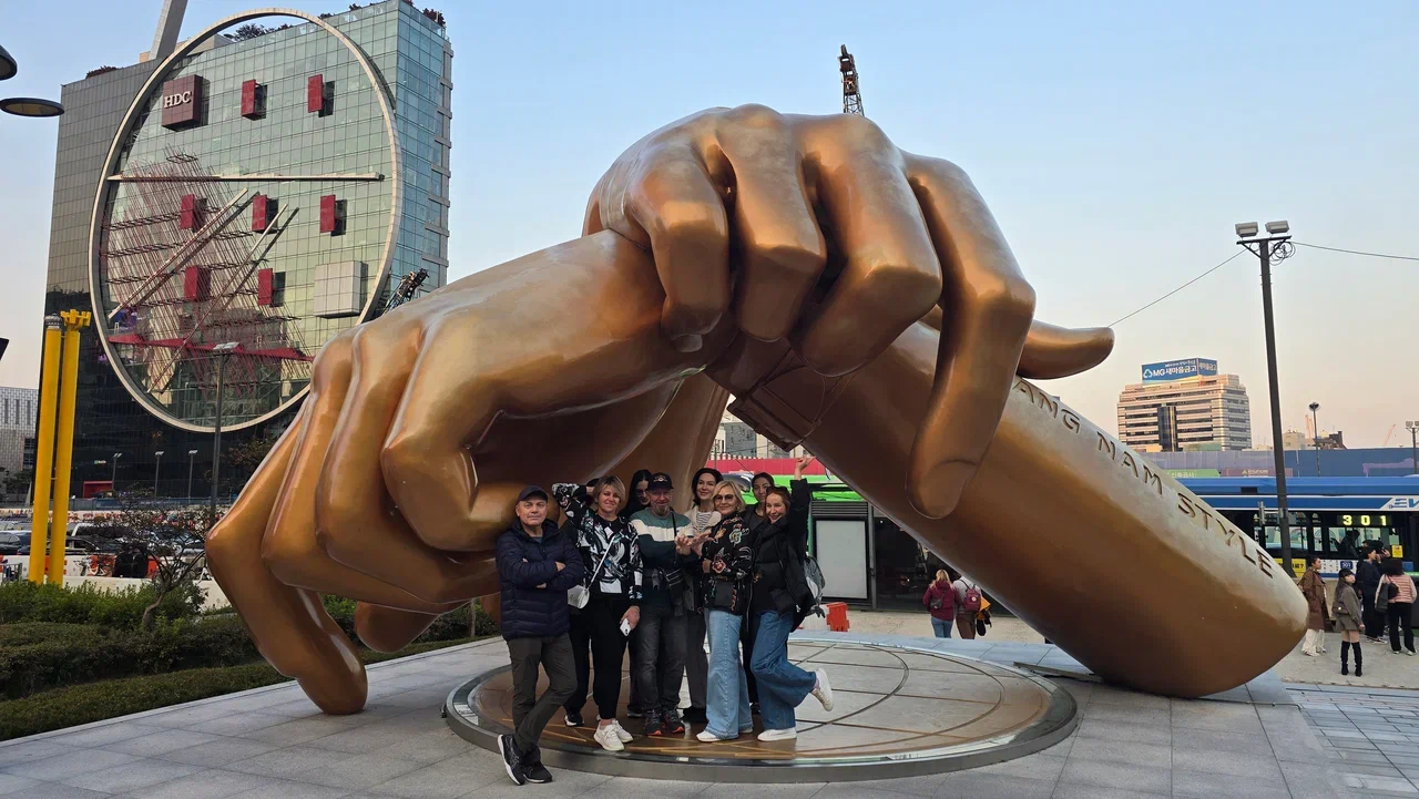 Фото у культовой статуи Gangnam Style, которая прославила это место на весь мир.