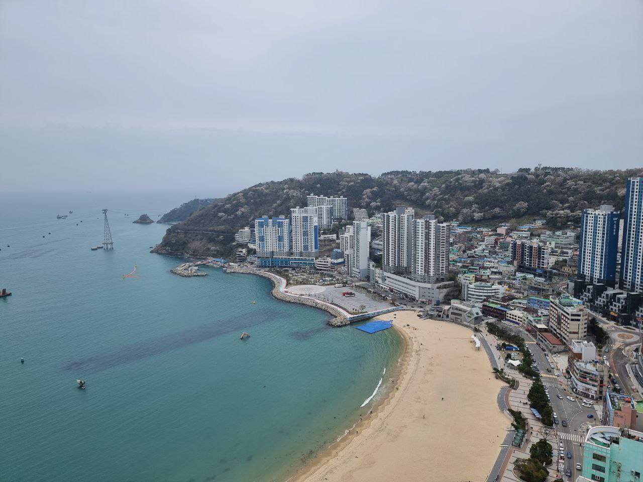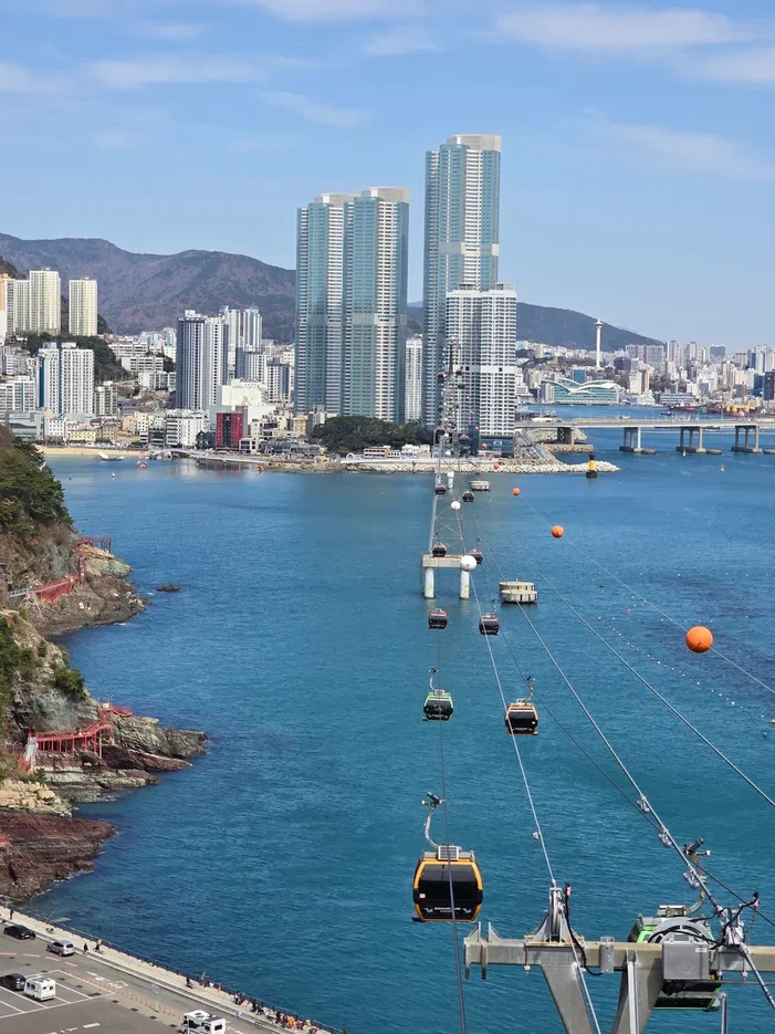 Переезд на канатной дороге над морем от парка Сонним к парку Амнам с панорамным видом на побережье.