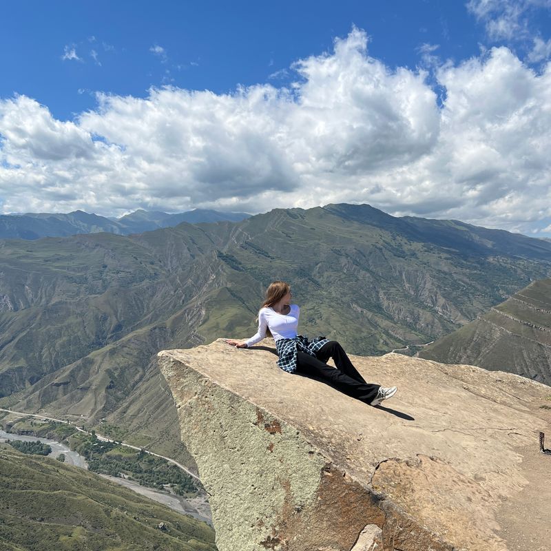 Язык Тролля скалистый выступ над пропастью с видом на потрясающую долину Аварского Койсу. Одно из популярных мест, притягивающее туристов в Дагестане.