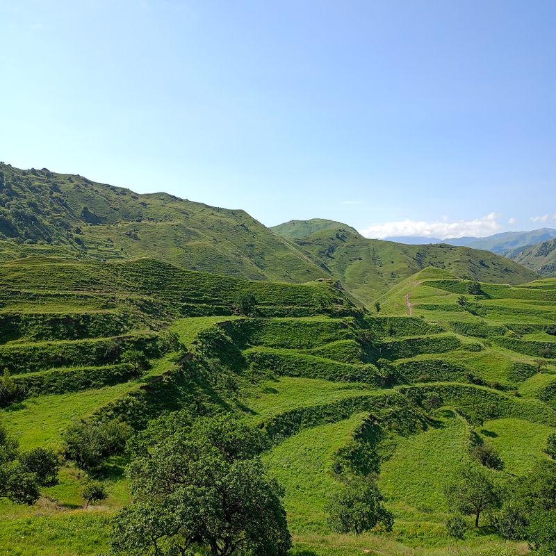 Чохские террасы - это искусственно созданные террасы для выращивания зерновых культур. Местные жители шаг за шагом отвоёвывали у гор крошечные участки плодородной земли.