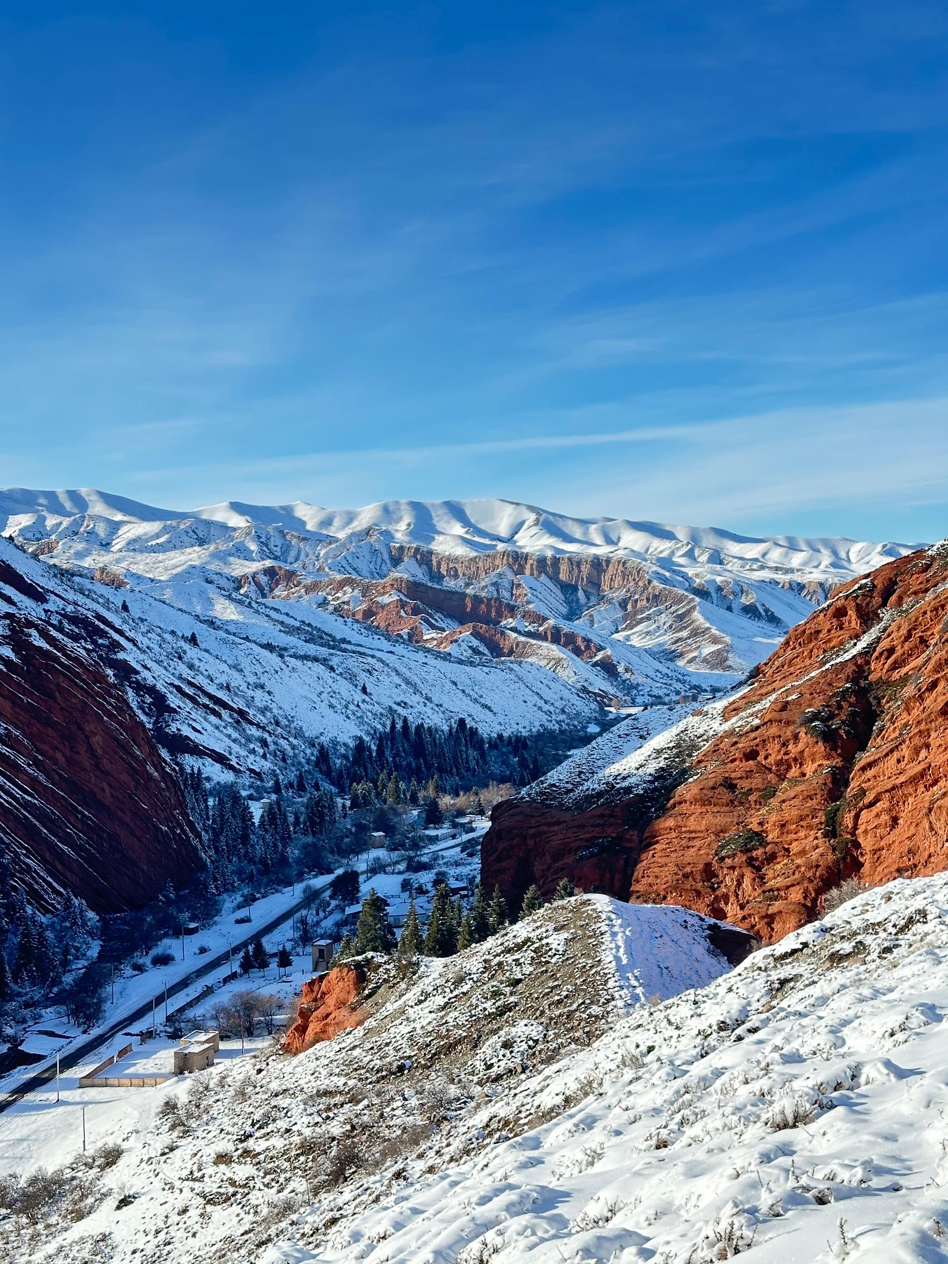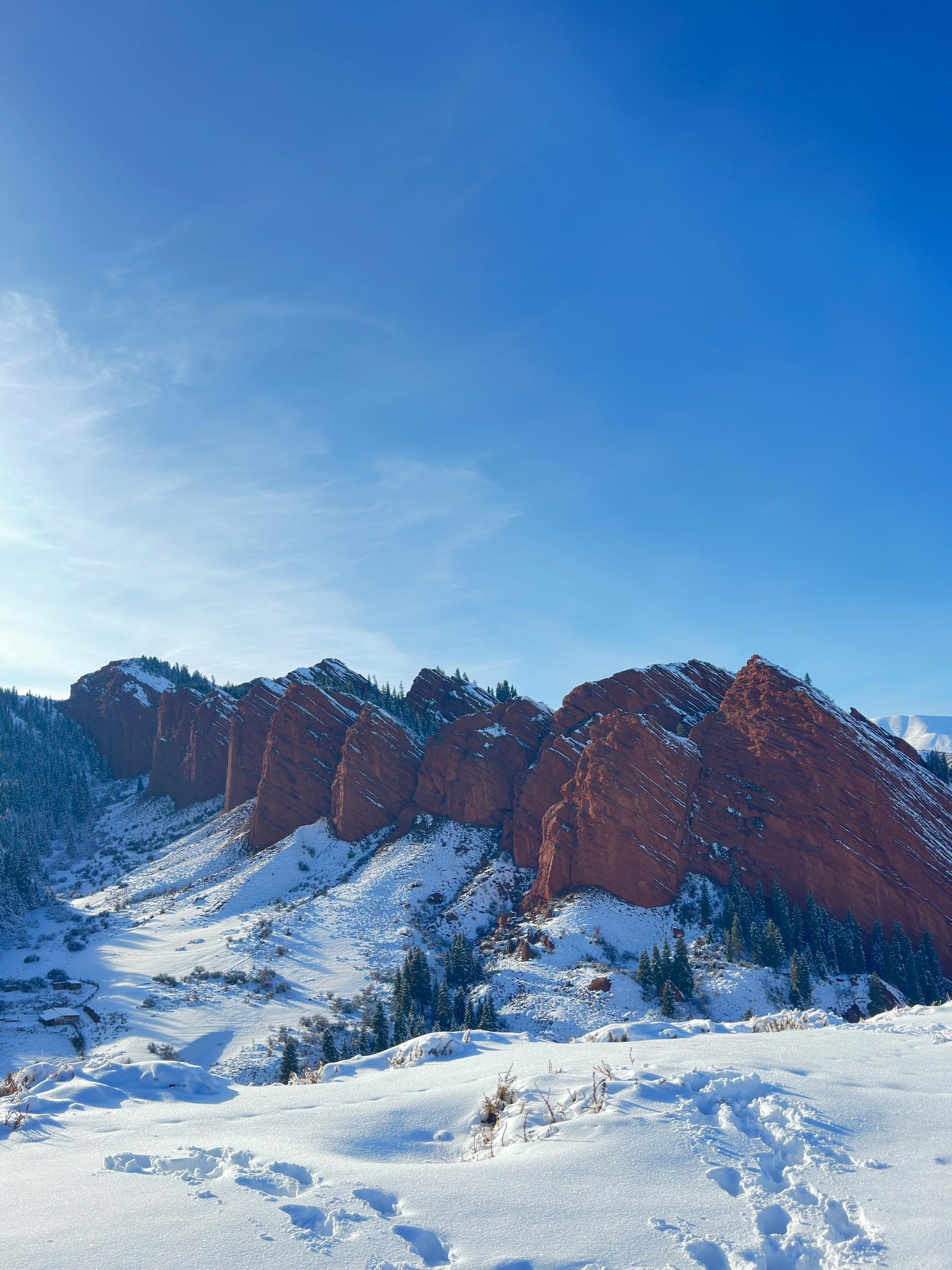 После этого нас ждет ущелье Джети-Огуз с ярко-красными скалами, укутанными снежными шапками. Также посетим скалу в видео Разбитого сердца. Вечером мы устроим ночевку в городе Каракол, где нас ждет национальная кухня и уютная атмосфера