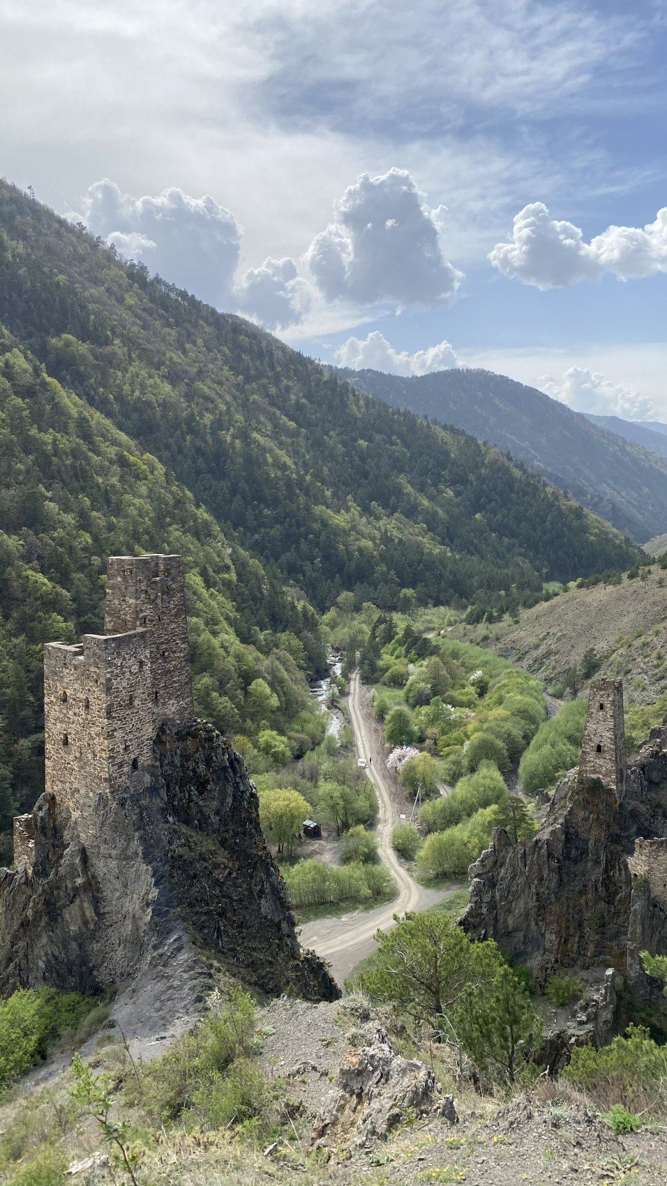 Уже на границе мы почувствуем разницу между горами этих братских республик , Ассиновское ущелье одно из красивейших мест на Кавказе Башни вовнушки