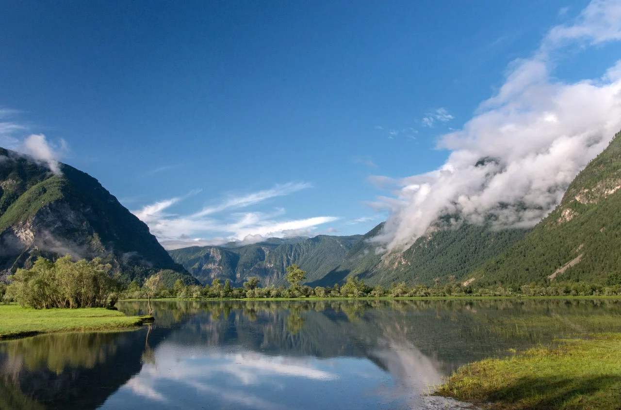 Встреча группы в городе Бийске. Часть пути мы проедем по Чуйскому тракту. Заедем в Республиканский краеведческий музей имени Анохина в Горно-Алтайске. Сможем увидеть уникальные коллекции, археологические материалы из раскопок курганов Ак-Алаха с плато Укок, коллекцию работ алтайского художника Г. И. Чорос-Гуркина, образцы флоры и фауны, коллекцию минералов, палеонтологические коллекции. Затем двинемся в сторону Телецкого озера. Дорога очень живописная, проходит через ряд невысоких перевалов и приводит нас к верховьям р. Бия. Еще немного, и вот оно Телецкое озеро. Размещаемся на турбазе. Ужин.